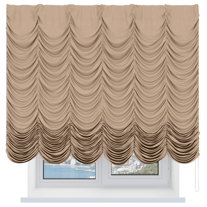 Французская штора вельвет тёмно-коричневый, карниз верёвочный