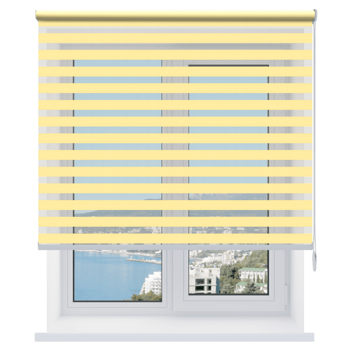 Каждый слой ткани имеет чередующиеся непрозрачные и прозрачные полосы. При смещении полос друг относительно друга можно добиться полного затемнения («ночь», когда непрозрачные полосы совпадают), максимального светопропускания («день», когда совпадают прозрачные полосы) или промежуточных режимов, создавая эффект «зебра».