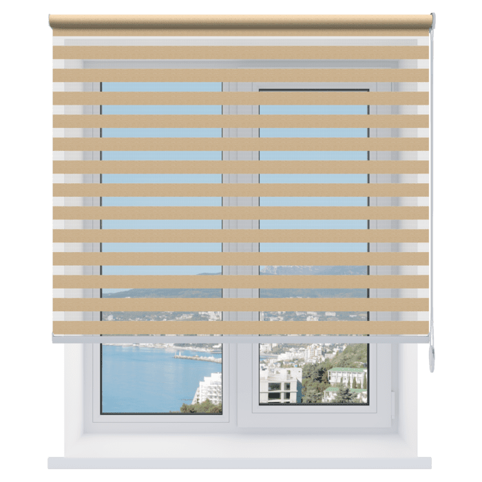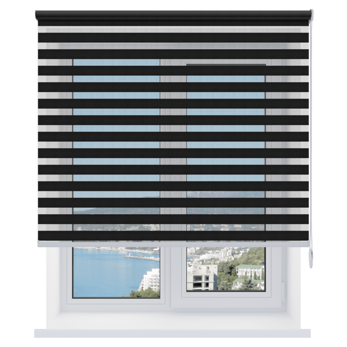 - Универсальность. Открытые рулонные шторы-жалюзи «день-ночь» подходят для любых помещений – от спальни до кухни, и легко сочетаются с другими элементами декора.